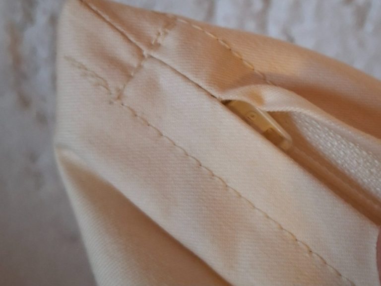 Falsch ist, wenn sie den Zipper des Reißverschlusses nur zuziehen, bis er am Stoff endet. Dadurch kann es passieren, dass sich der Dinkelspelz nach außen drücken kann.